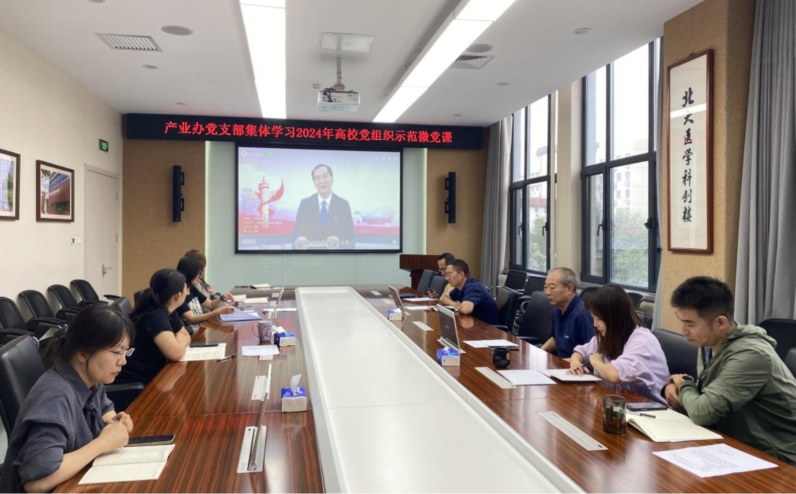 为深入贯彻学习党的二十届三中全会精神,迎接新中国成立75周年,产业办党支部积极响应号召,9月4日下午,在科创楼309会议室组织全体党员、发展对象集体观看2024年高校党组织示范微党课(第1讲)。本期微党课以《坚持教育科技人才“三位一体”,奋力谱写中国式现代化宏伟篇章》为主题,邀请来自北京大学、南开大学、厦门大学、中国科学技术大学、武汉大学、山东大学六所知名院校的主要领导、专家学者、党员师生代表,分别结合各自高校的办学理念和教育传统,深刻阐述“教育、科技、人才是中国式现代化的基础性、战略性支撑”的丰富内涵,深入解读推进教育、科技、人才“三位一体”协同融合发展,并分享了他们各自在发展实践中取得的优秀宝贵经验。微党课主题鲜明,制作精良,党员同志们表示备受启发、收益良多。