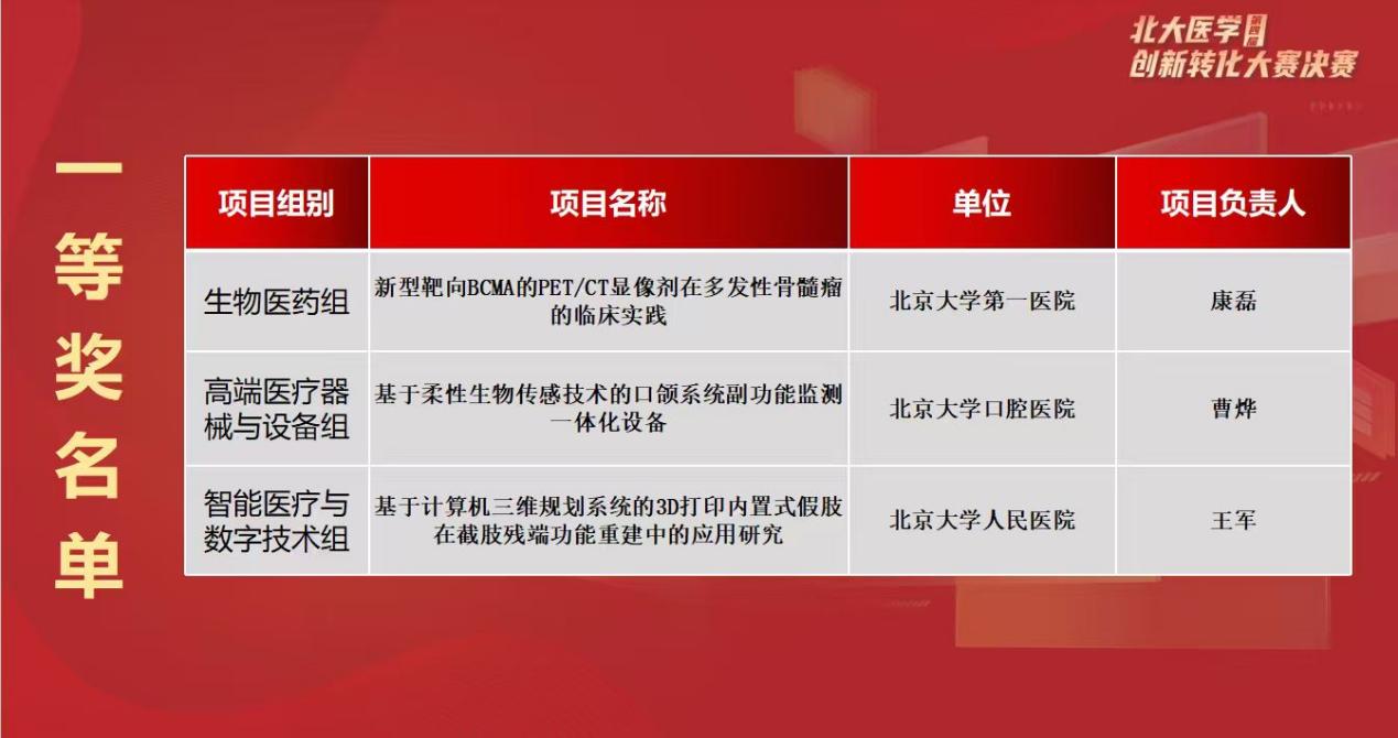 北大医学创新转化大赛已逐步成长为北大医学促进学科交叉融合、打通创新链与产业链壁垒的核心品牌活动。赛事不仅是对北大医学前沿创新成果的高水平集中检阅,更是推动产学研用深度协同、加速科技成果从实验室走向临床应用的生动实践。它既为北大医学深化创新驱动发展、服务“健康中国”建设凝聚了磅礴智慧、整合了优质资源、明晰了前进方向,更向行业传递了医学创新的核心价值,为我国医疗健康产业高质量发展持续注入北大医学的创新动能。