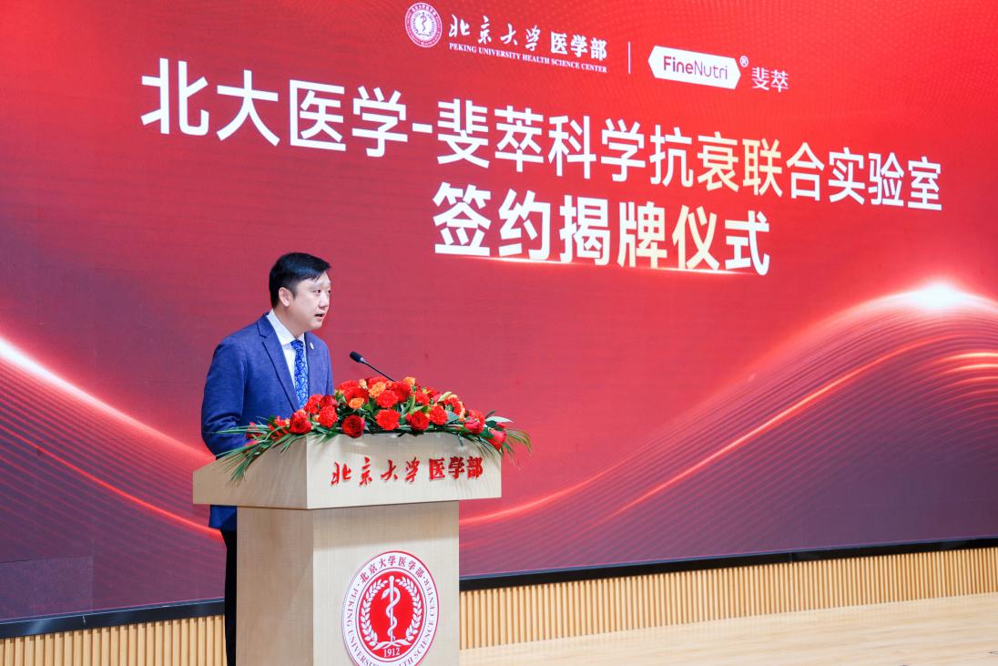 肖渊致辞中指出,如何通过科学手段延缓衰老、提升生命质量是 21 世纪生命科学领域极具挑战性与社会价值的课题。此次北大医学部与斐萃共建联合实验室,是“科技创新”与“产业创新”的双向赋能、“聚焦前沿”与“扎根需求”的精准对接、“立德树人”与“产业报国”的同频共振。他希望双方以此次签约为新起点,秉持“十年磨一剑”的定力,在抗衰领域持续产出“从0到1”的原创性成果,并加速实现“从1到N”的产业化转化。